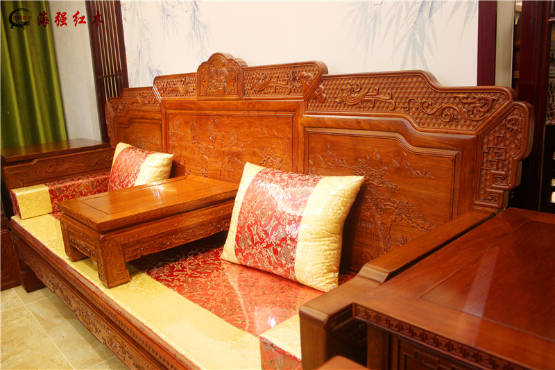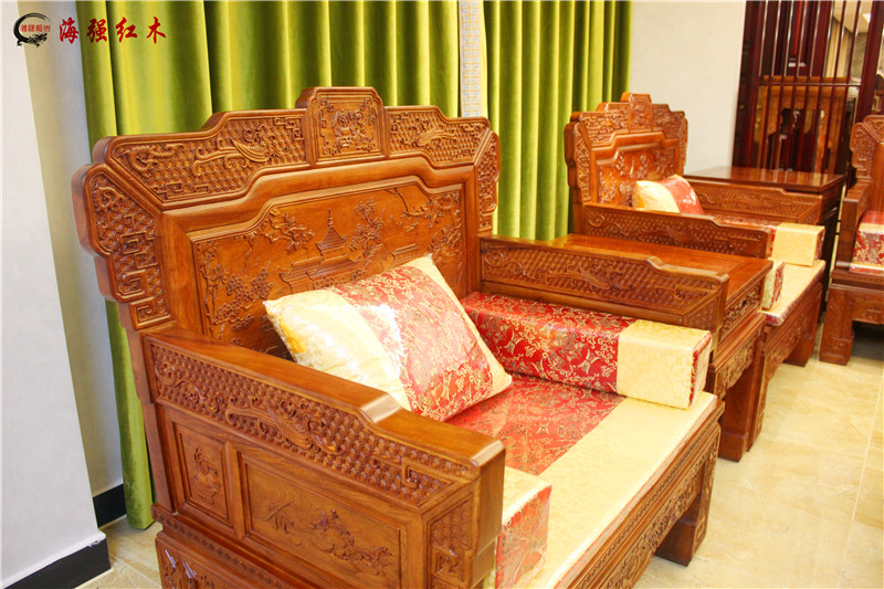 材質(zhì):緬甸花梨木紅酸枝漢宮沙發(fā)