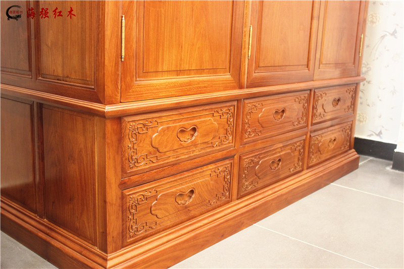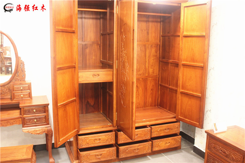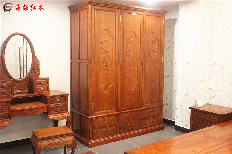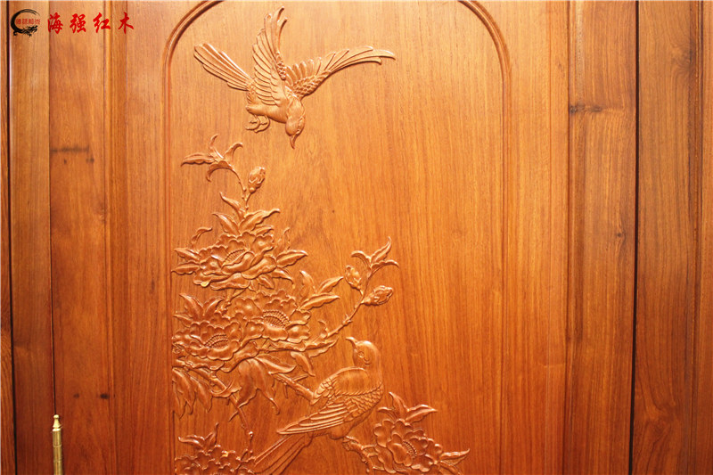 衣柜門上雕刻花鳥圖。(另外還有雕刻山水圖,和素面沒有雕刻的供您選擇)更多衣柜請點擊這里