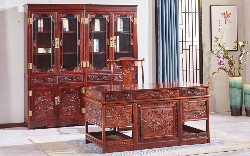 山水書(shū)桌+書(shū)柜