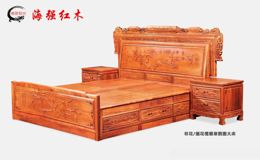 仿古雕花紅木床
